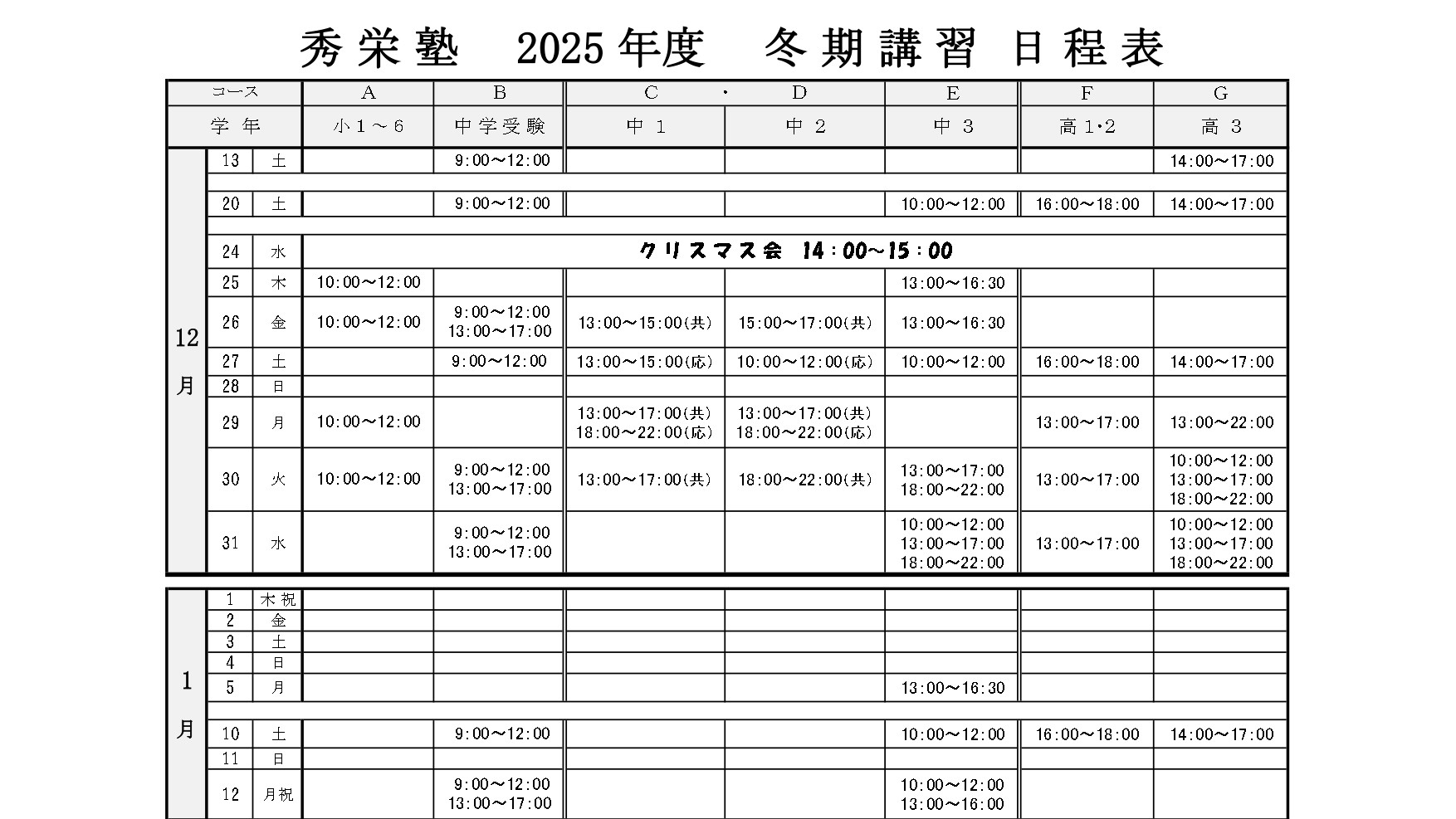 季節毎に各講習会を実施しています。